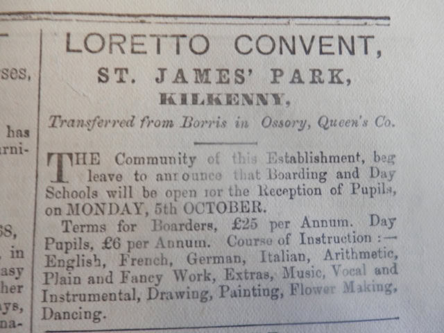 A fuller history of the founding of Loreto in Kilkenny can be read in this brief article that appeared in the 1899 Loreto Annual: